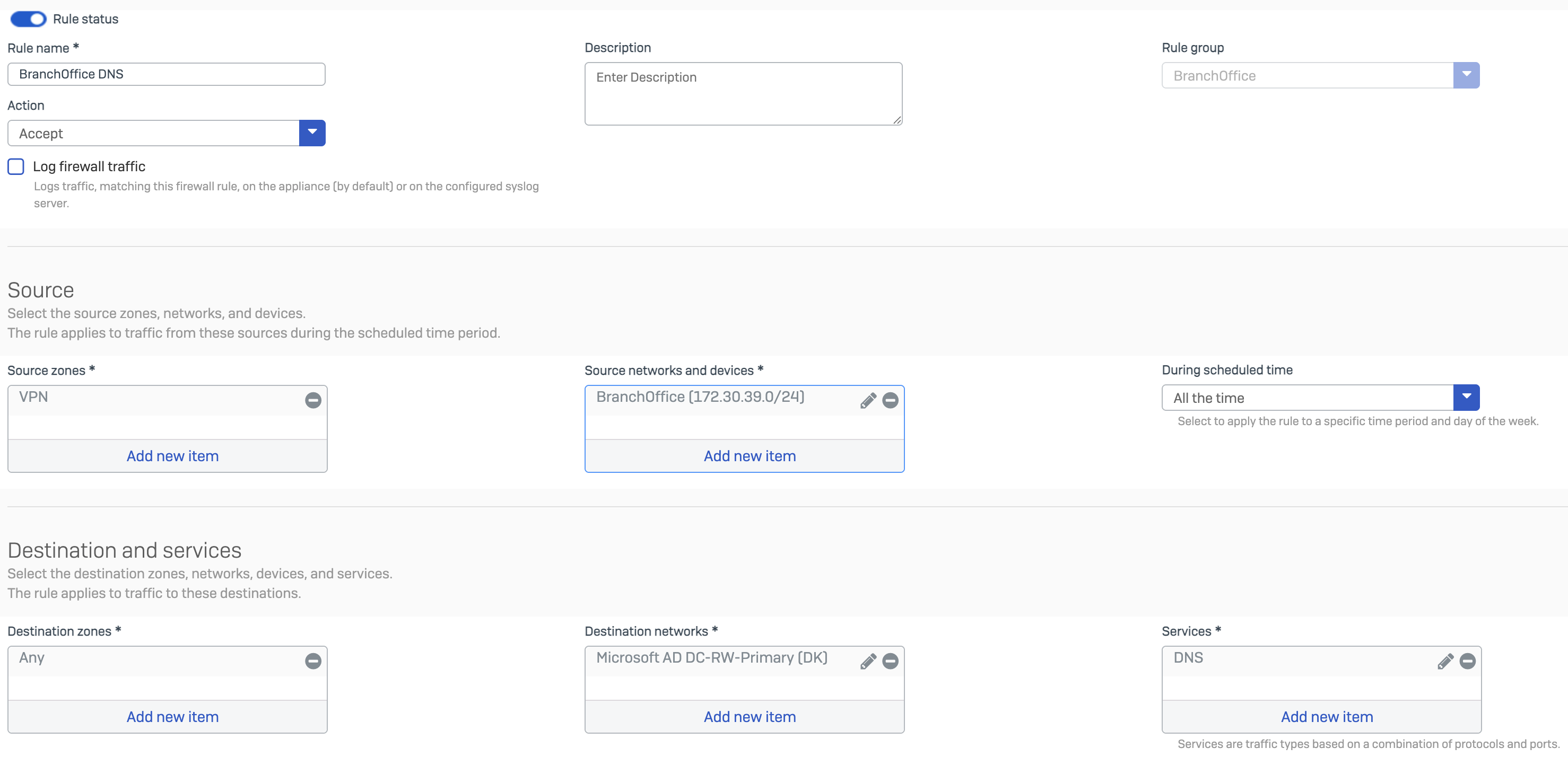 Rule 2: Allows Branch Office network to make DNS queries on the DHCP Server.