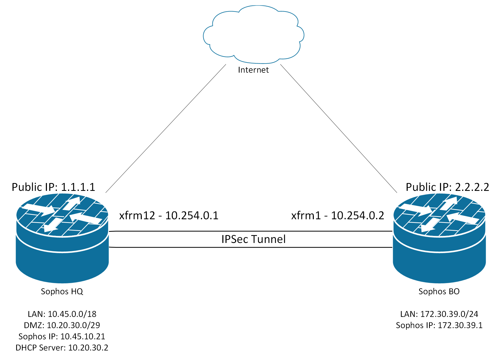 Name Headquaters IP Version IPv4 Connection Type Tunnel interface Gateway type Responder Profile IKEv2 Authentication Type RSA Key — — Listening interface Port2 - 1.1.1.1 Local ID Type IP adddress Local ID 1.1.1.1 Local Subnet Any — — Remote Gateway address 2.2.2.2 Remote ID Type IP adddress Remote ID 2.2.2.2 Remote Subnet Any